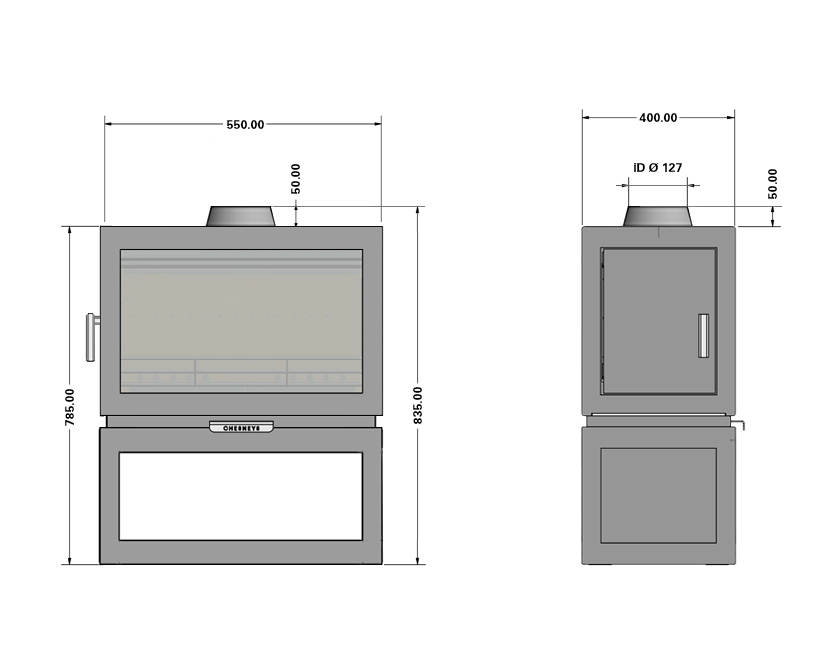 OVERALL SIZE - Excluding Flue Pipe: 550mm (W), 835mm (inc. flue collar) (H), 400mm (D)