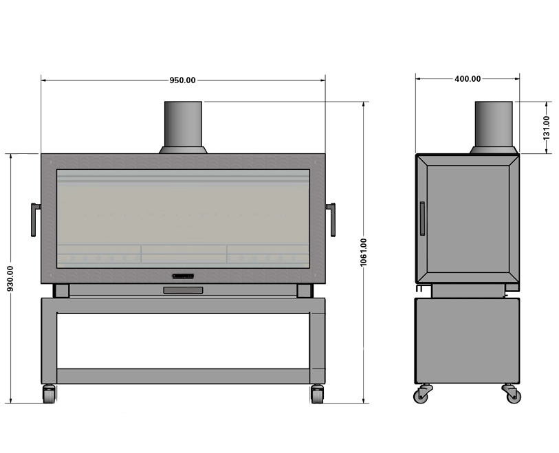 OVERALL SIZE - Excluding Flue Pipe: 950mm (W), 1061mm (inc. flue collar) (H), 400mm (D)